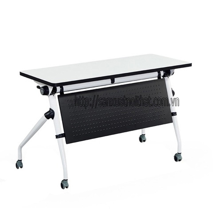 Bàn được thiết kế có kết cấu gập mặt bàn từ góc 180 độ xuống góc 90 độ, khung bàn được thiết kế để xếp lồng vào nhau nhằm tối ưu không gian sử dụng.